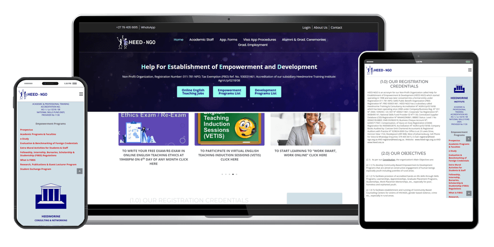 We were thrilled to collaborate with the HeedMorine Institute, a South African non-profit organization dedicated to providing education, accommodation and many other services. We focused on building a website that effectively communicates their mission and impact.