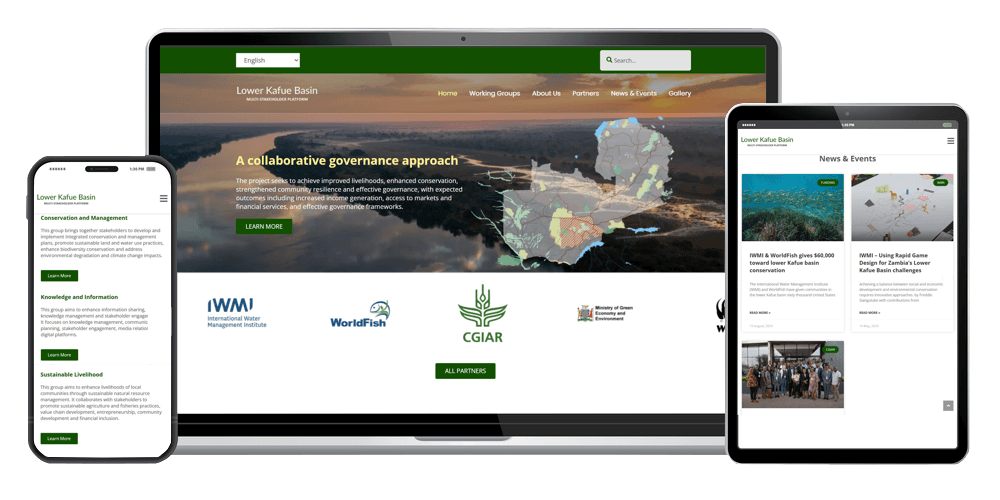 We were honored to collaborate with the Lower Kafue Basin Multistakeholder Platform, a collaborative governance approach that brings together diverse actors to address complex challenges in the basin. We focused on building a website that effectively communicates their mission and facilitates collaboration among stakeholders.